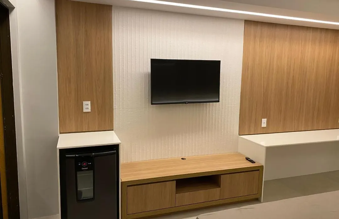 El Resort Praia Dos Carneiros ofrece vistas a la piscina e incluye un cuarto de estar, un balcón y una cocina con climatizador. El apartamento cuenta con 1 dormitorio. Para mayor comodidad, esta propiedad dispone de un inodoro separado y una ducha. El cuarto de baño dispone de toallas de baño.